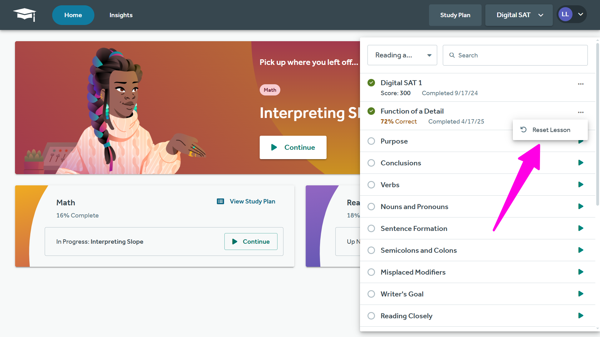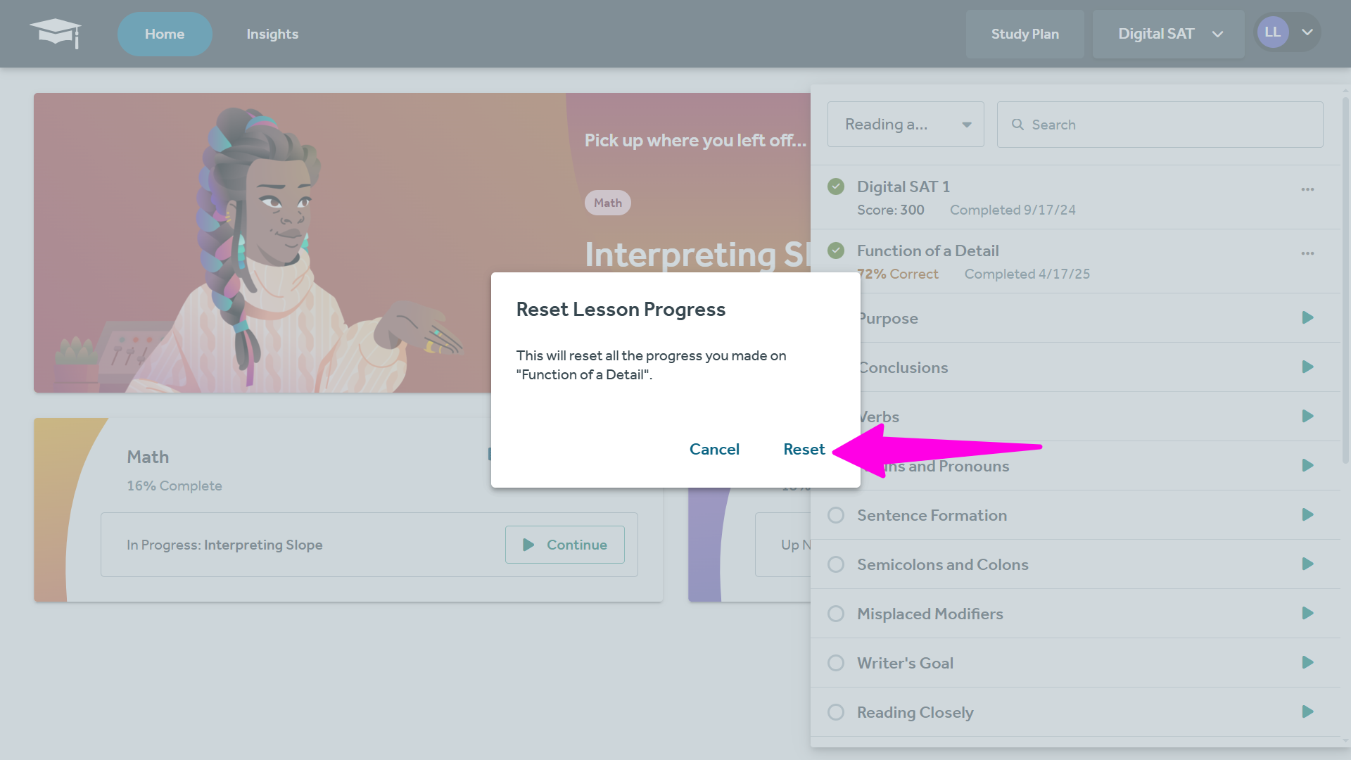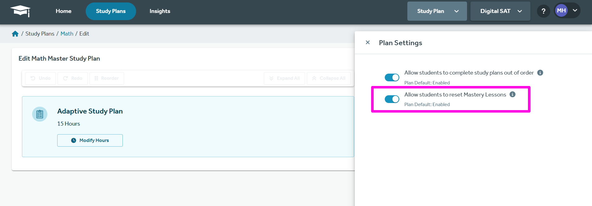 FAQ: Can I reset Study Plan Mastery Lessons for my students?